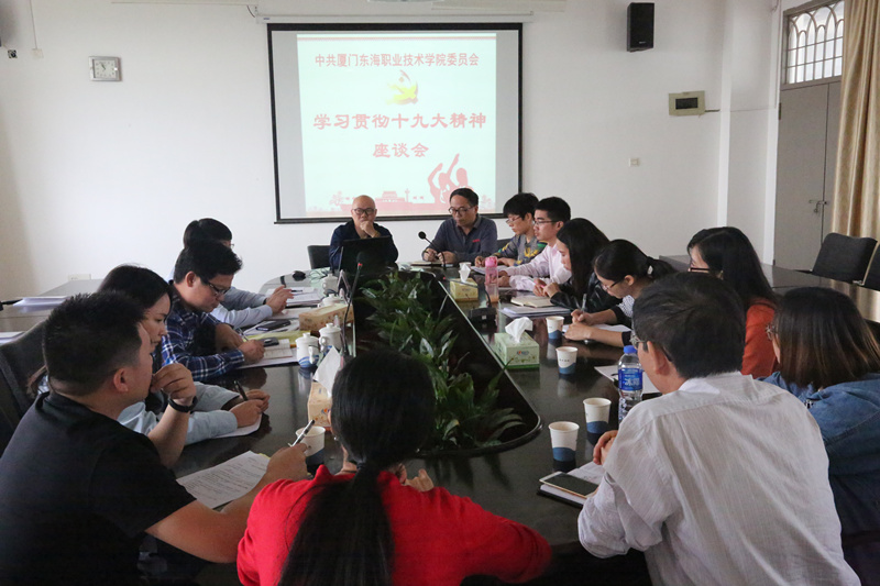 11月14日上午,市委教育工委常务副书记林佳添一行领导莅临我校宣讲党的十九大精神,并了解我校学习贯彻党的十九大精神相关工作情况。学院党政领导、党务干部、师生党员代表、共青团员代表共31人参加了宣讲座谈会。