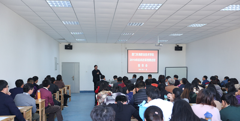 1月17日下午,新东海迎来新一轮的中层以上领导干部竞聘述职活动,泉舜集团吴泉水董事长、李少民副董事长(总裁)、李云昆副总裁等一行领导亲临竞聘报告会现场,与全校教职工共同见证学校新一轮人事改革的高规格开端。本次共有14名教工参与校办、招办、教务处等五个部门的主要领导岗位的竞聘或述职,他们中有博士研究生学历的学者,也有具备几十年行业工作经验的专家,还有十几年如一日奋战在学校一线岗位的东海人。他们的参与,为我校推行“能者上,庸者下”的人事改革,打造年轻化、专业化,富有事业激情和专业水准的工作队伍,做出了积极的示范。