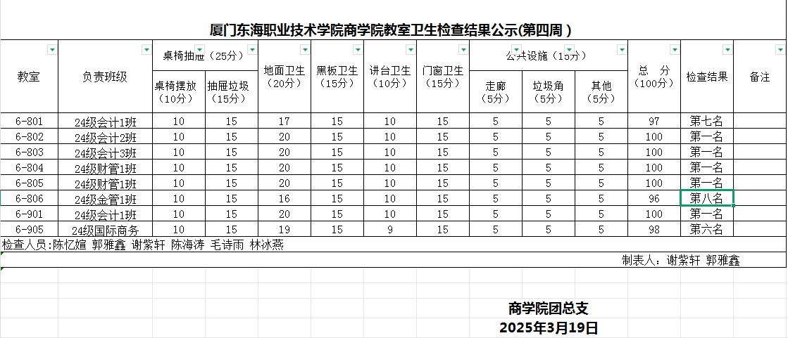 2024-2025学年第二学期商学院第4周班级卫生评比